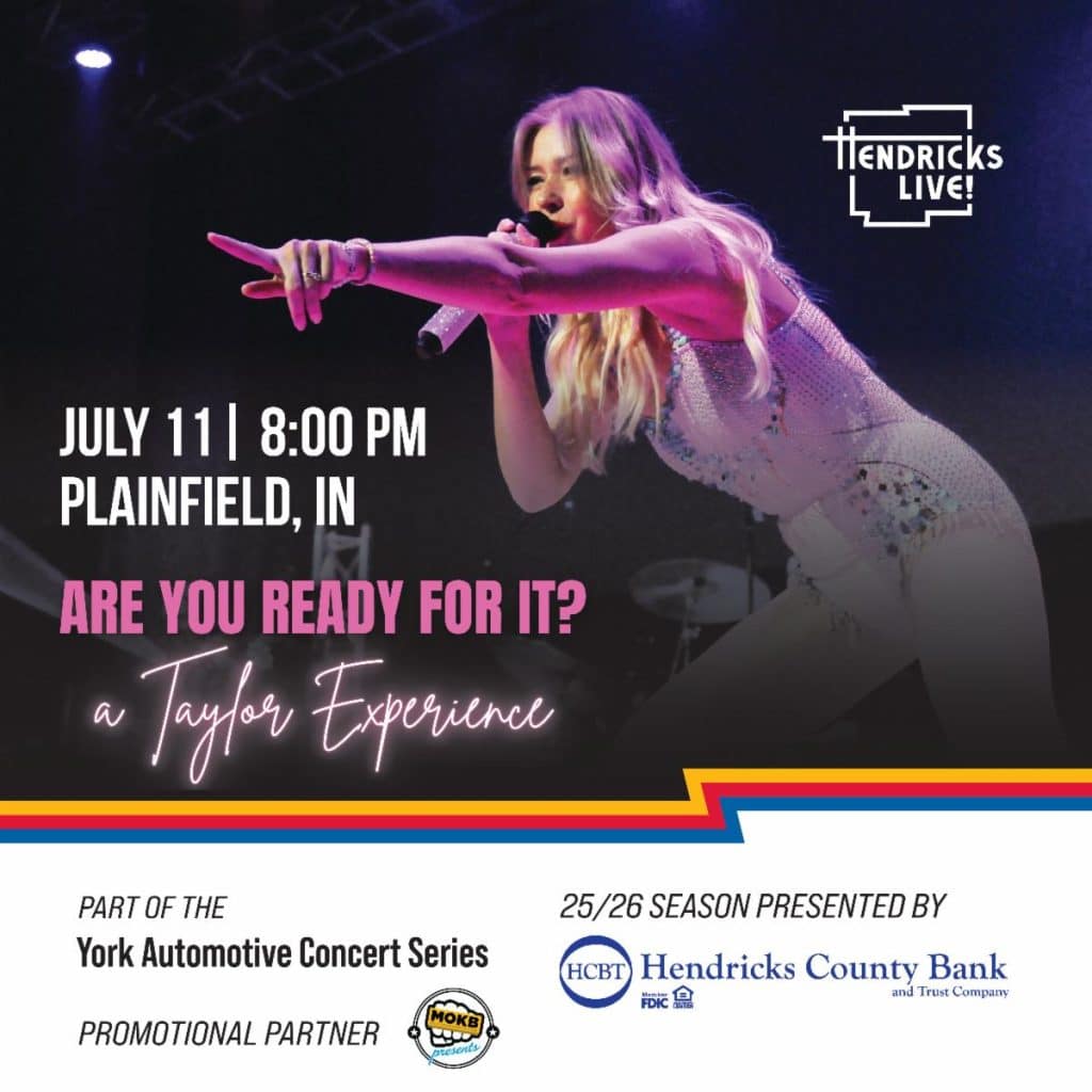 PLAINFIELD, IN (March 10, 2026) – Hendricks Live! in downtown Plainfield is pleased to welcome Are You Ready For It? A Taylor Experience on Saturday, July 11. This exciting performance by Traci Marie is part of the Summer 2026 season presented by Hendricks County Bank and Trust and supported by Hendricks Regional Health.