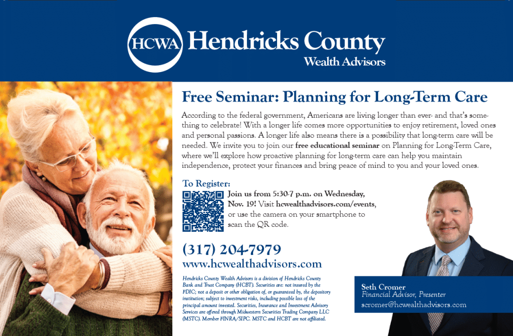 Hendricks County Wealth Advisors Seminar: Planning for Long Term Care – November 19th Brian Scott 4 days ago Local Events Leave a comment 72 Views Share Facebook Twitter LinkedIn